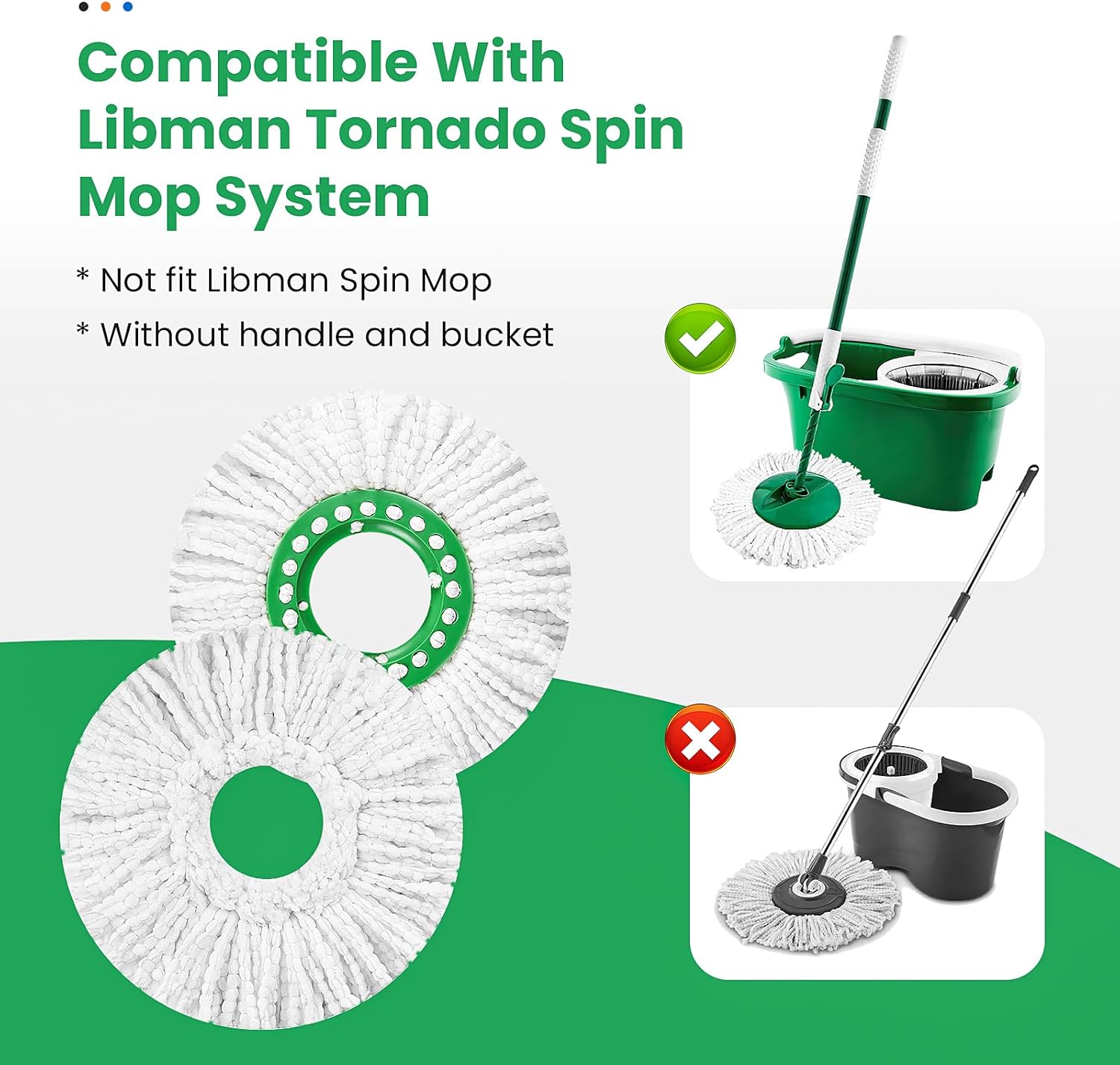 - Only For Spin Mop: These mop heads suit Spin Mop System 1492 / 1283; Includes: 3-pack mop head refills without a handle and bucket