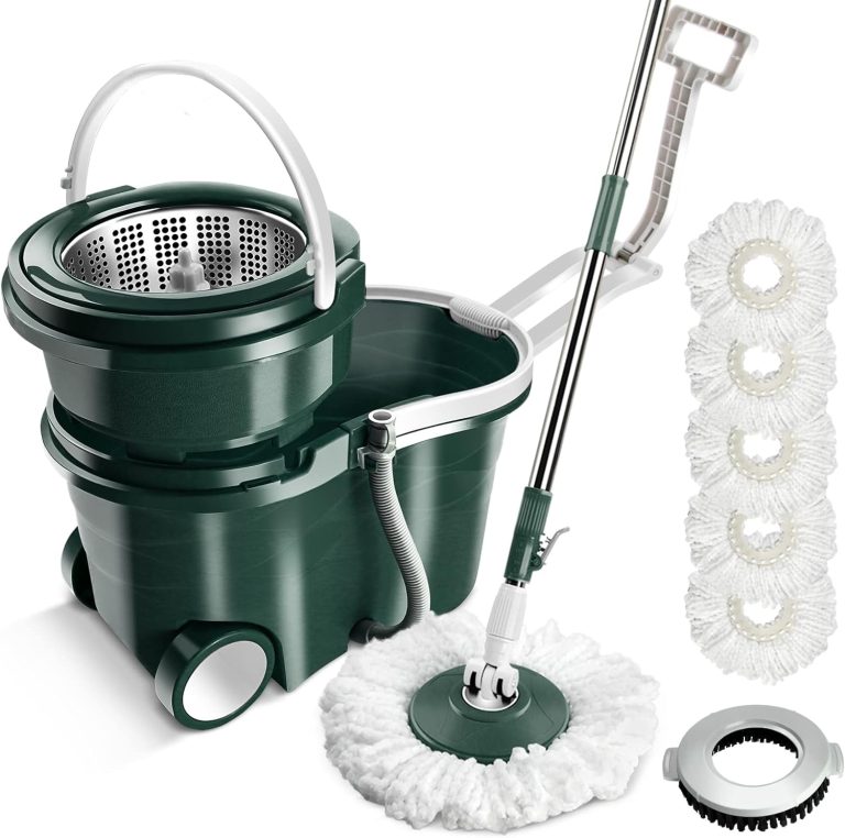 - ※ HAND FREE WRINGING :Our 360° Spin Mop and Bucket design features a built-in wringer that allows for hand free wringing and wetting when splashing and spraying inside the bucket while wringing or transporting the mop bucket from one room to another