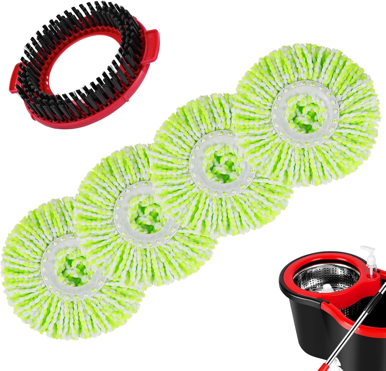 - Extended Pack Set: Receive a comprehensive package including 4 round spin mop replacement heads and 1 scrub brush. These machine-washable mop replacements are crafted for easy reuse, ensuring you always have clean mops at hand.