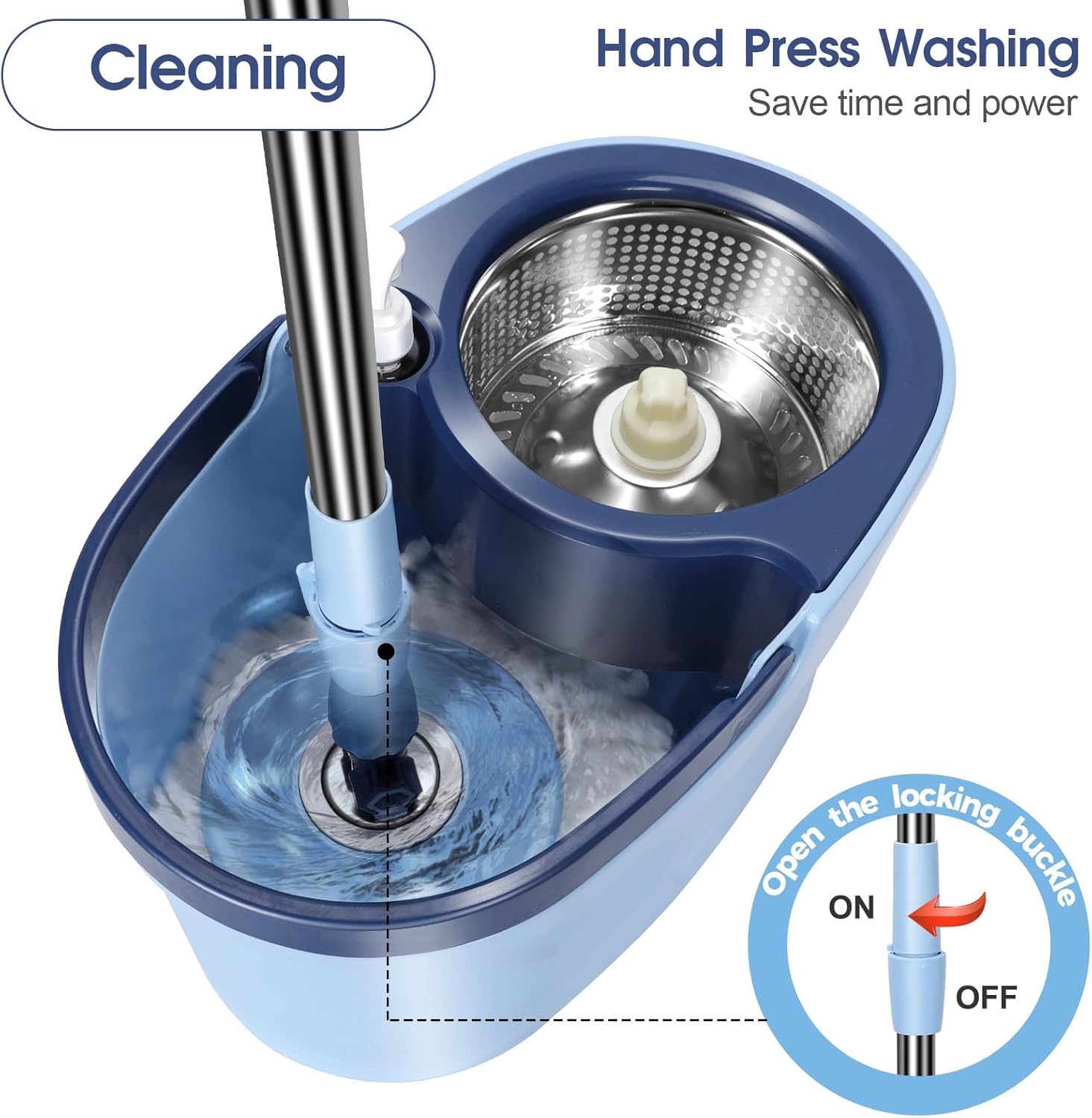 - High-quality Materials: This mop and bucket with wringer set for home features from stainless steel adjustable handle, which is not deformed and durable, can extend up to 51” inch. This spin mop and bucket could be used for a long term. The microfiber mop pads would not damage floors and would improve cleanliness efficiency.